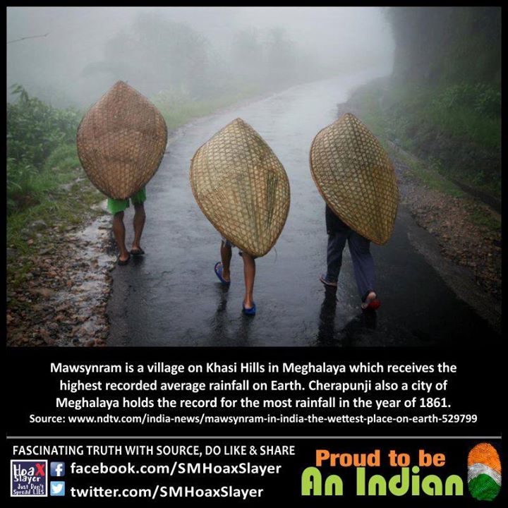 Mawsynram is a village on Khasi Hills in Meghalaya which receives the highest recorded average rainfall on Earth. Cherapunji also a city of Meghalaya holds the record for the most rainfall in the year of 1861.