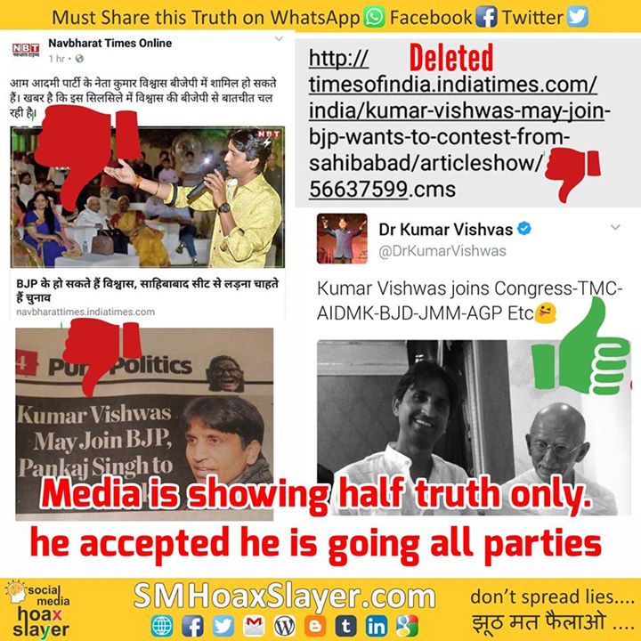 Source: https://twitter.com/DrKumarVishwas/status/821323290773831680 https://www.facebook.com/SMHoaxSlayer/photos/a.147357335599672.1073741828.140690692933003/408328359502567/?type=3