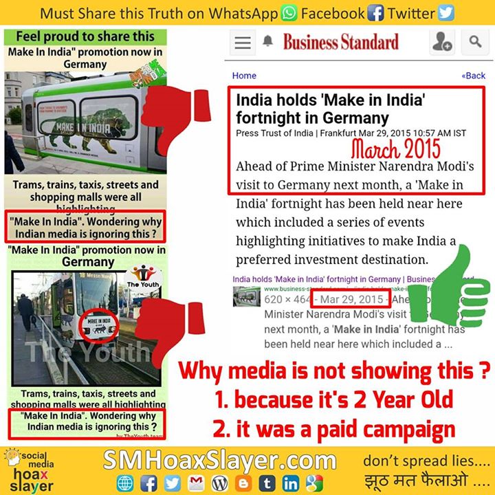Source: http://wap.business-standard.com/article/pti-stories/india-holds-make-in-india-fortnight-in-germany-115032900116_1.html https://www.facebook.com/SMHoaxSlayer/photos/a.147357335599672.1073741828.140690692933003/421789898156413/?type=3
