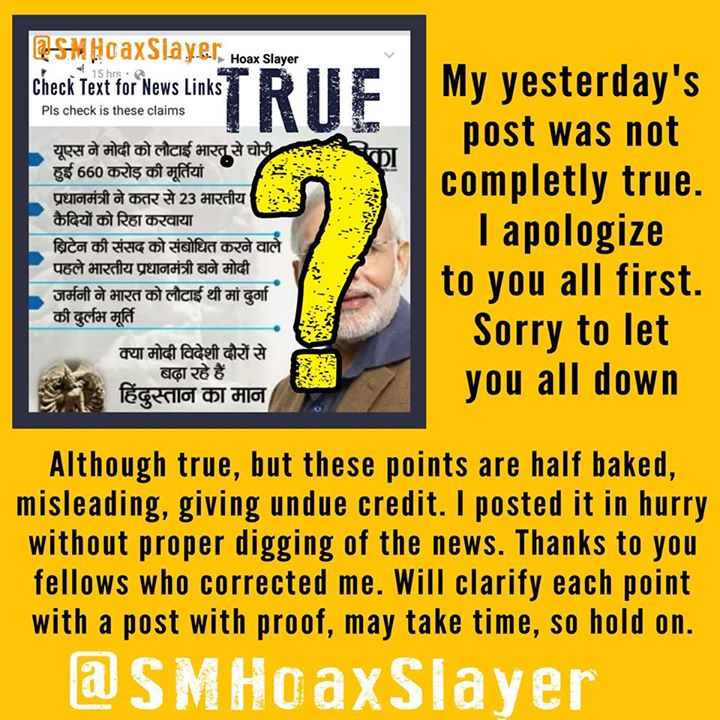 My yesterday’s post was not completely true, I Apologize. Although true, but these points are half baked, misleading, giving undue credit. I posted it in hurry without proper digging of the news. Thanks to you fellows who corrected me. Will clarify each point with a post with proof, may take time, so hold on. https://www.facebook.com/SMHoaxSlayer/photos/a.147357335599672.1073741828.140690692933003/297469153921822/?type=3