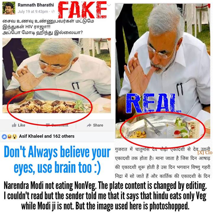 @narendramodi not eating #NonVeg The plate content is changed by editing #Photoshop.