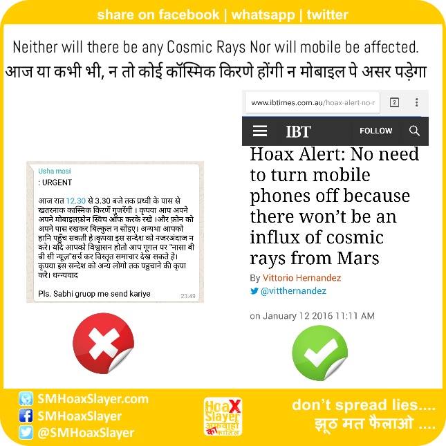 Source: http://www.ibtimes.com.au/hoax-alert-no-need-turn-mobile-phones-because-there-wont-be-influx-cosmic-rays-mars-1499488 https://www.facebook.com/SMHoaxSlayer/photos/a.147357335599672.1073741828.140690692933003/320557464946324/?type=3