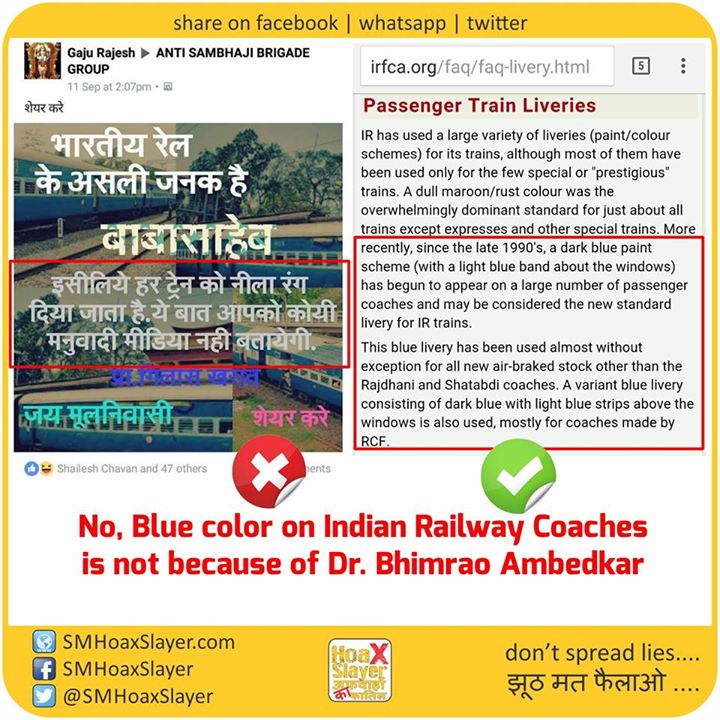 No, Blue color on Indian Railway Coaches is not because of Dr. Bhimrao Ambedkar https://www.facebook.com/SMHoaxSlayer/photos/a.147357335599672.1073741828.140690692933003/344259065909497/?type=3