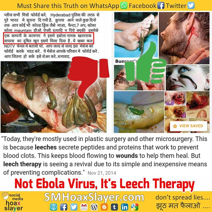 Source: http://www.healthline.com/health/what-is-leech-therapy https://www.facebook.com/SMHoaxSlayer/photos/a.147357335599672.1073741828.140690692933003/424629971205739/?type=3