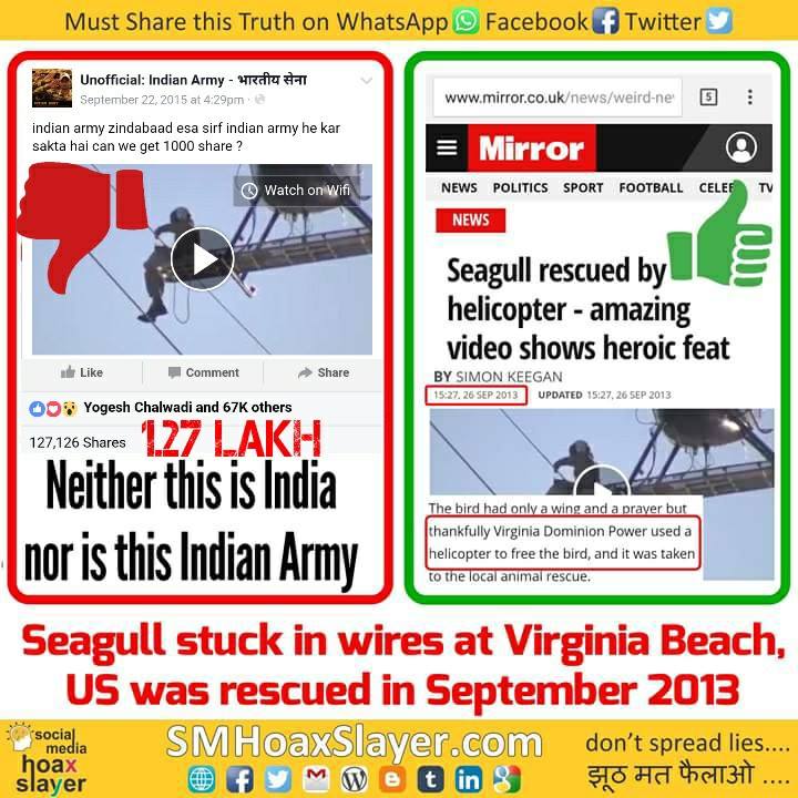 Truth: http://www.mirror.co.uk/news/weird-news/seagull-rescued-helicopter—amazing-2306432 https://www.facebook.com/SMHoaxSlayer/photos/a.147357335599672.1073741828.140690692933003/411793709156032/?type=3