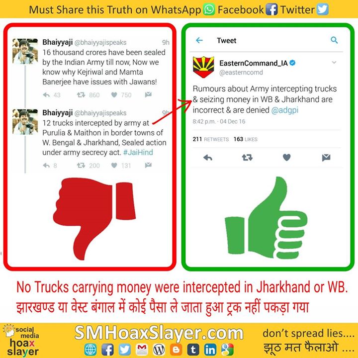 No Trucks carrying money were intercepted in Jharkhand or WB.