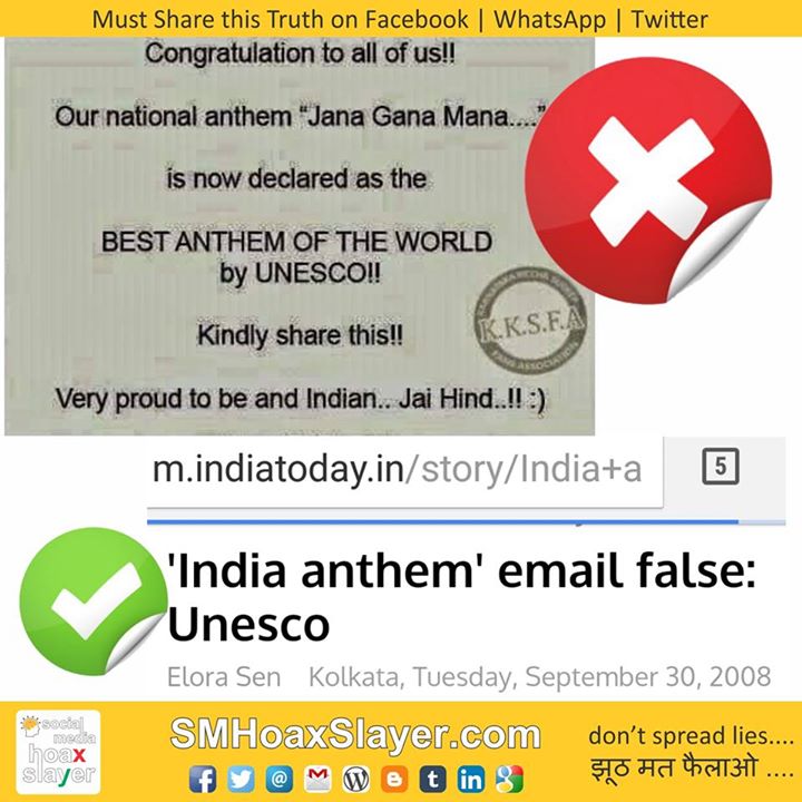 No, @unesco never declared Jana mana gana, India’s National Anthem as best in the world.