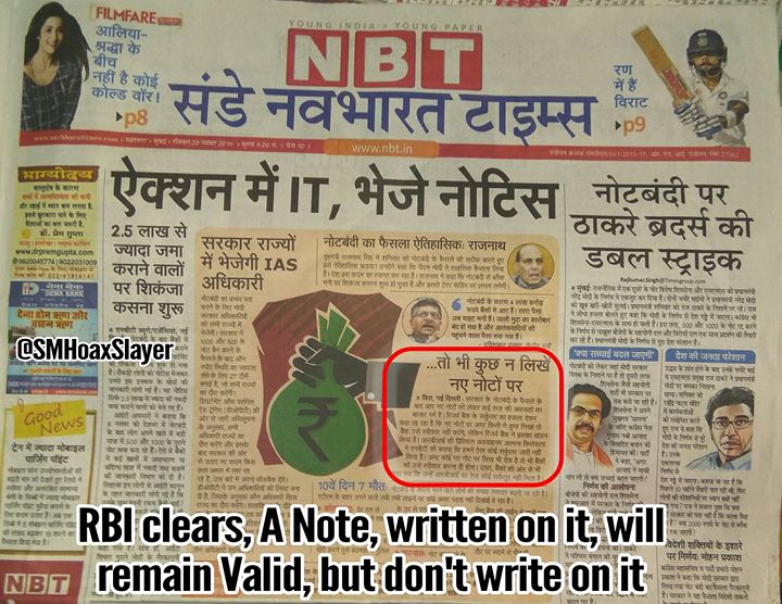 #Notes @RBI clears, A Note, written on it, will remain Valid, but don’t write on it for It’s longer life and readability. https://www.facebook.com/SMHoaxSlayer/photos/a.147357335599672.1073741828.140690692933003/379072259094844/?type=3