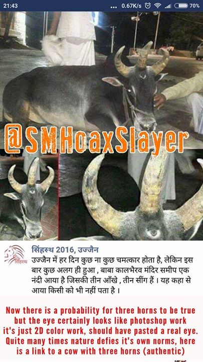 Now there is a probability for three horns to be true but the eye certainly looks like Photoshop work. It’’s just 2D color work, should have pasted a real eye.