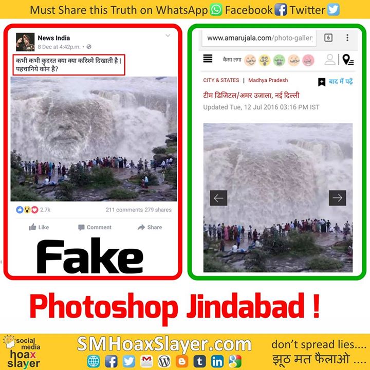 Old, exposed a lot but stil a Lie by a page in the name of respect to Army for likes and pushing their website. Modi’s face on water falls, nature coincidence.