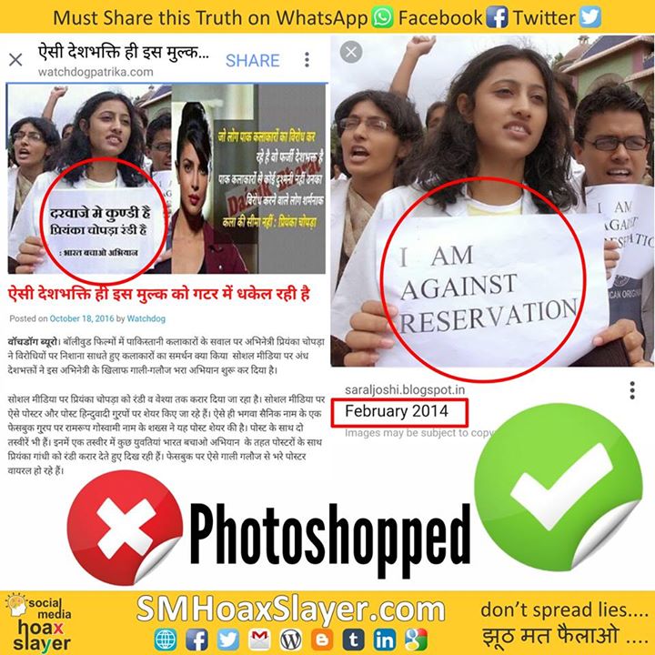 Photo is of protests against Reservation in 2014, not @priyankachopra