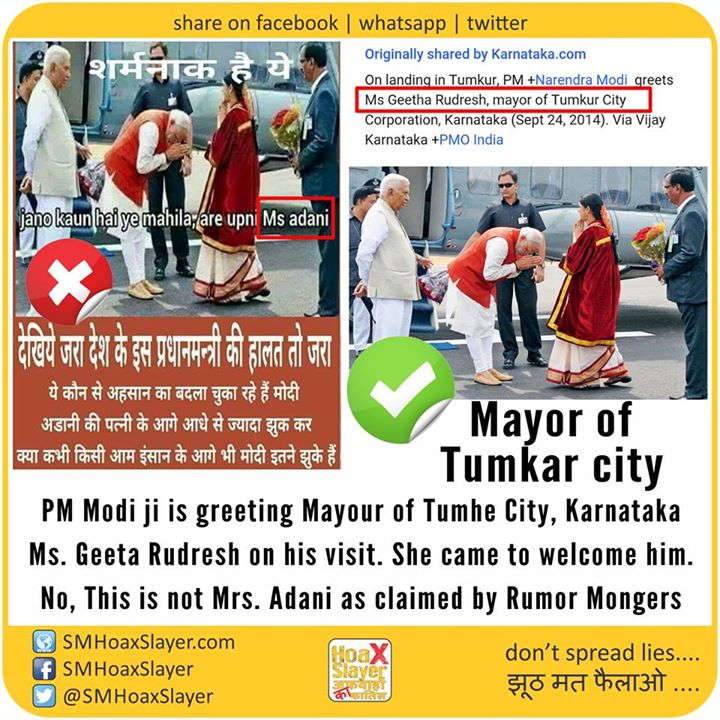 No, This is not Mrs. Adani as claimed by Rumor Mongers https://www.facebook.com/SMHoaxSlayer/photos/a.147357335599672.1073741828.140690692933003/329662784035792/?type=3