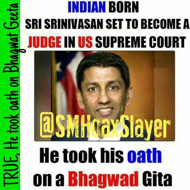 TRUTH: He took oath on a Bhagwad Gita held by his mother Saroja when he was sworn in as the Appeals Court judge, and among family and friends who attended the ceremony were then PM Manmohan Singh’s wife Gursharan Kaur and their daughters Amrit and Upinder. His own younger sister Srinija is an early employee of Yahoo.