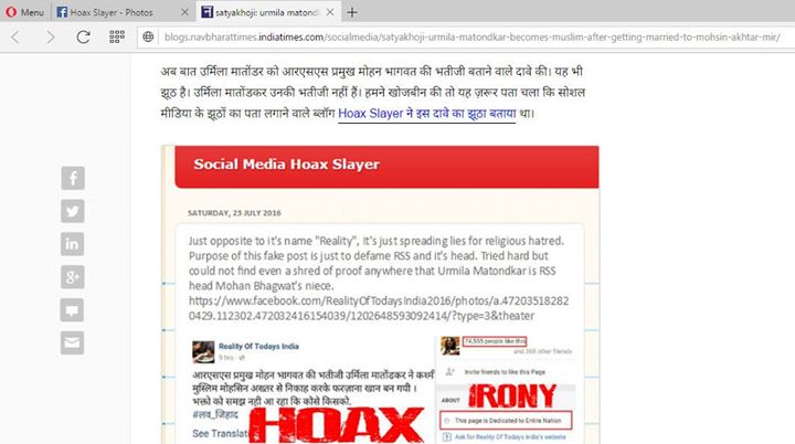Read top 3 lines, what Navbharat Times says about this page. https://www.facebook.com/SMHoaxSlayer/photos/a.147357335599672.1073741828.140690692933003/399738553694881/?type=3