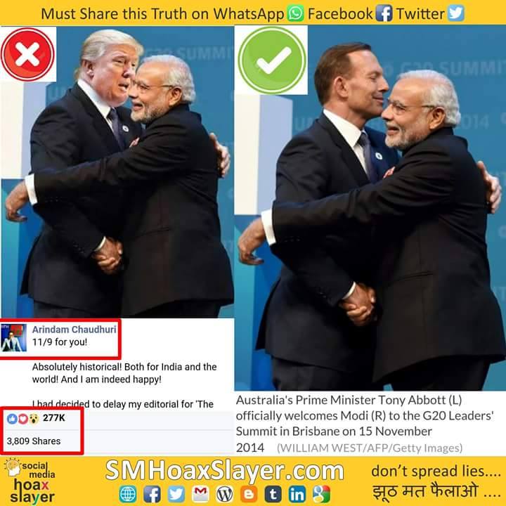 Fake Photo by @Arindam_IIPM of @realDonaldTrump hugging @narendramodi