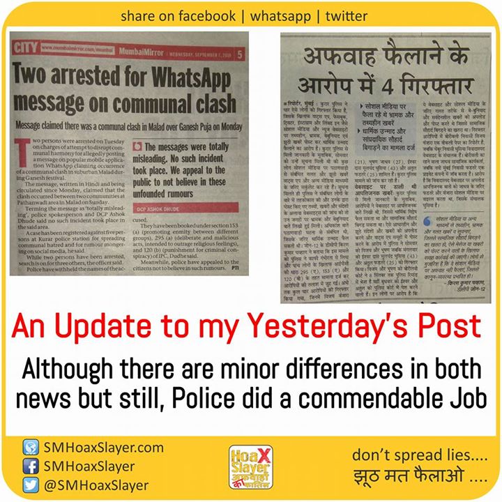 @MumbaiPolice Great Job https://www.facebook.com/SMHoaxSlayer/photos/a.147357335599672.1073741828.140690692933003/341483216187082/?type=3