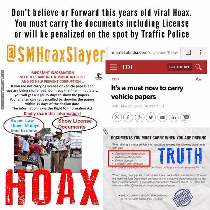 10. http://m.timesofindia.com/city/pune/Its-a-must-now-to-carry-vehicle-papers/articleshow/12375035.cms https://www.facebook.com/SMHoaxSlayer/photos/a.147357335599672.1073741828.140690692933003/283359441999460/?type=3