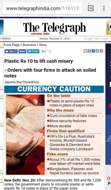 Source: http://www.telegraphindia.com/1161121/jsp/business/story_120411.jsp#.WEpMAMvhXqB https://www.facebook.com/SMHoaxSlayer/photos/a.147357335599672.1073741828.140690692933003/388733408128729/?type=3