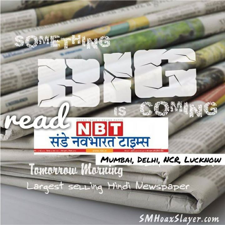Something BIG is coming tomorrow morning. Do read Sunday Navbharat Times, Mumbai, Delhi, NCR, Lucknow Editions.