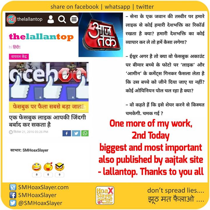 Link: http://www.thelallantop.com/jhamajham/like-farming-facebook-scams-look-before-you-like/ https://www.facebook.com/SMHoaxSlayer/photos/a.147357335599672.1073741828.140690692933003/348313842170686/?type=3