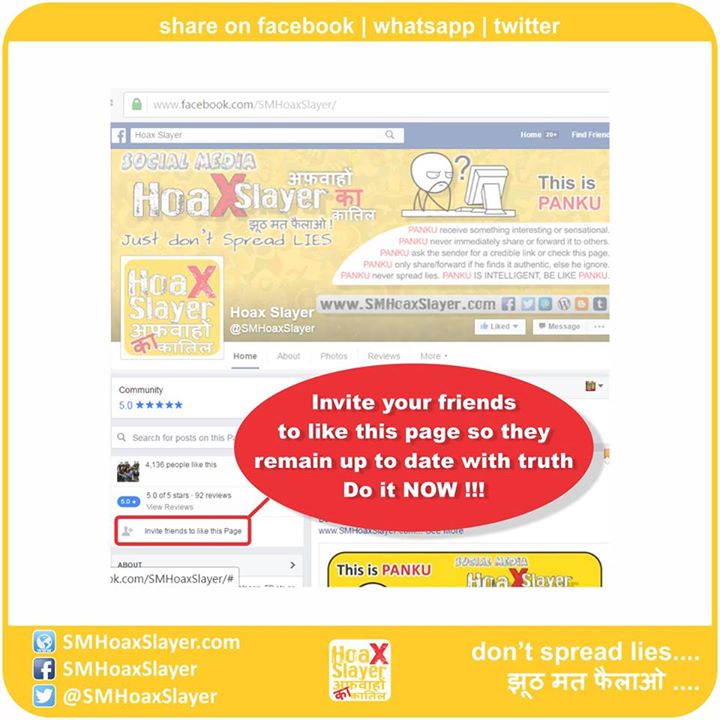 Thanks everybody for your appreciation. Do invite your friends to like this page so they too are updated with truth and do not fwd/share hoaxes. https://www.facebook.com/SMHoaxSlayer/photos/a.147357335599672.1073741828.140690692933003/323226558012748/?type=3