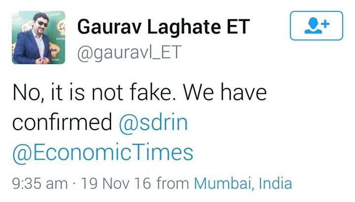 source: https://twitter.com/gauravl_ET/status/799825872106598400?s=09 https://www.facebook.com/SMHoaxSlayer/photos/a.147357335599672.1073741828.140690692933003/378619882473415/?type=3