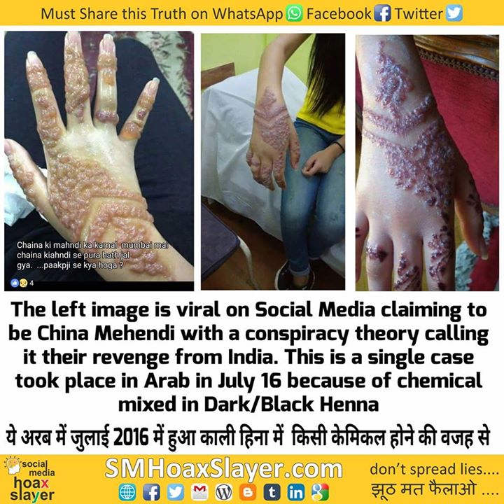 The left image is viral on Social Media claiming to be China Mehendi with a conspiracy theory calling it their revenge from India.