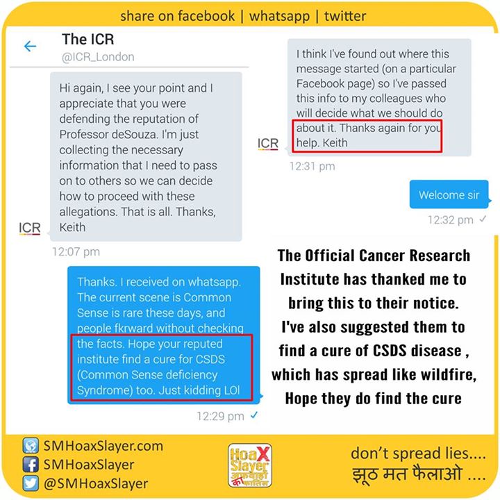 I’ve also suggested them to find a cure of CSDS disease , which has spread like wildfire. Hope they do find the cure https://www.facebook.com/SMHoaxSlayer/photos/a.147357335599672.1073741828.140690692933003/345440612458009/?type=3