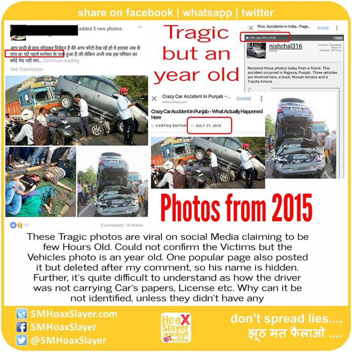 3. http://punjabnewslive.co.in/accident-in-patiala-road/ https://www.facebook.com/SMHoaxSlayer/photos/a.147357335599672.1073741828.140690692933003/322623794739691/?type=3