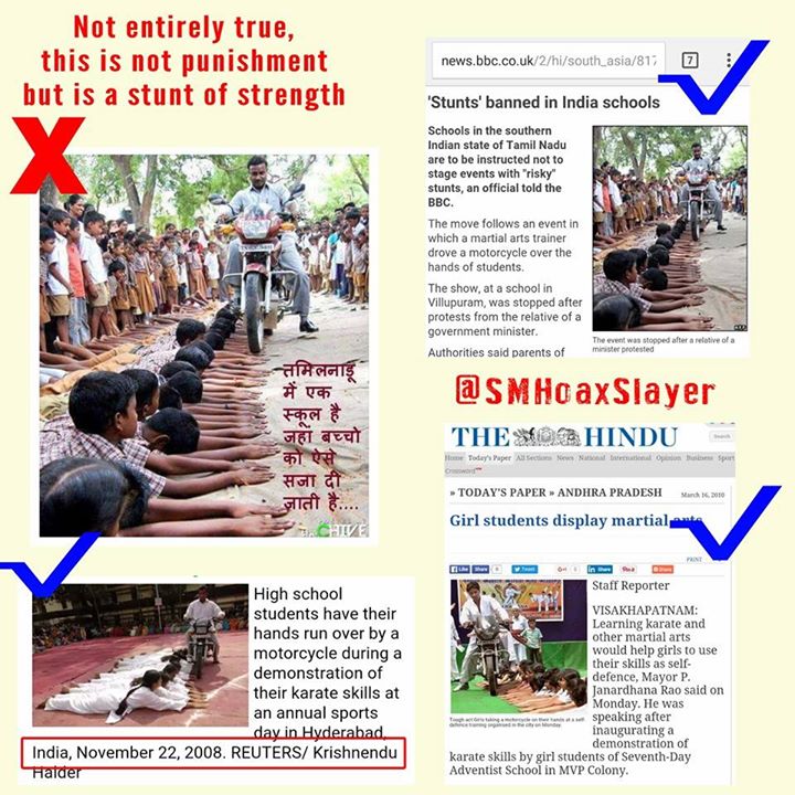 This is a #viral image claiming this as #punishment while it it not. It’s a show of #strength in #martial arts. this was later banned on complain of a parent.