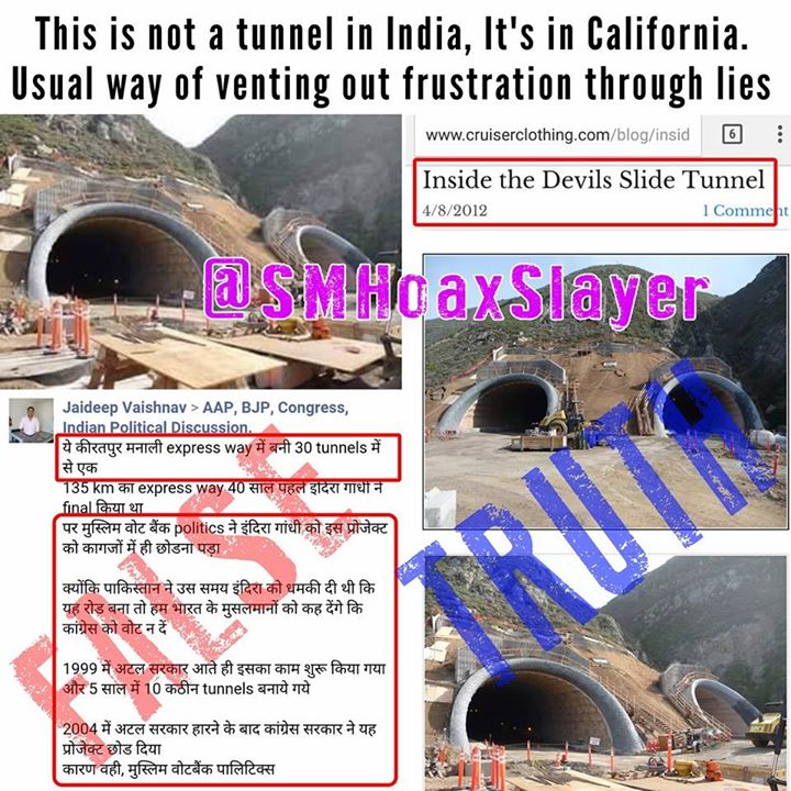 The Poster is giving credit to Current Gov and Mr. Gadkari while the Photo actually is of Tom Lantos Tunnel in Devil’s Slide Area in California. US. the poster is obviously so frustrated that he is adding religion and politics to prove his lie.