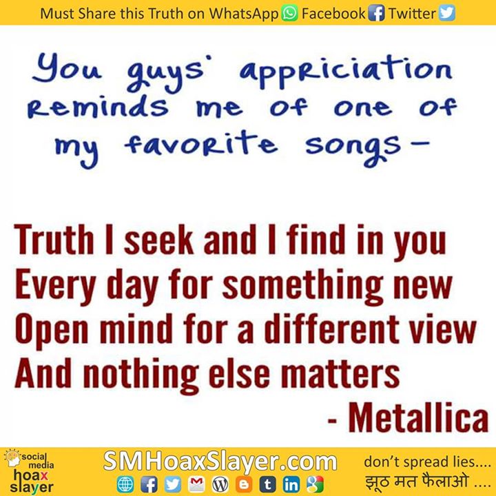 A word has been changed as per my convenience 😉 Trust – Truth https://www.facebook.com/SMHoaxSlayer/photos/a.147357335599672.1073741828.140690692933003/389860938015976/?type=3