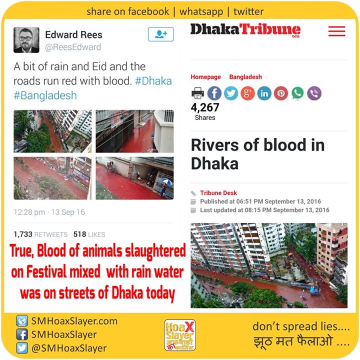 Source: http://www.dhakatribune.com/bangladesh/2016/09/13/rivers-blood-dhaka/ https://www.facebook.com/SMHoaxSlayer/photos/a.147357335599672.1073741828.140690692933003/344740792527991/?type=3