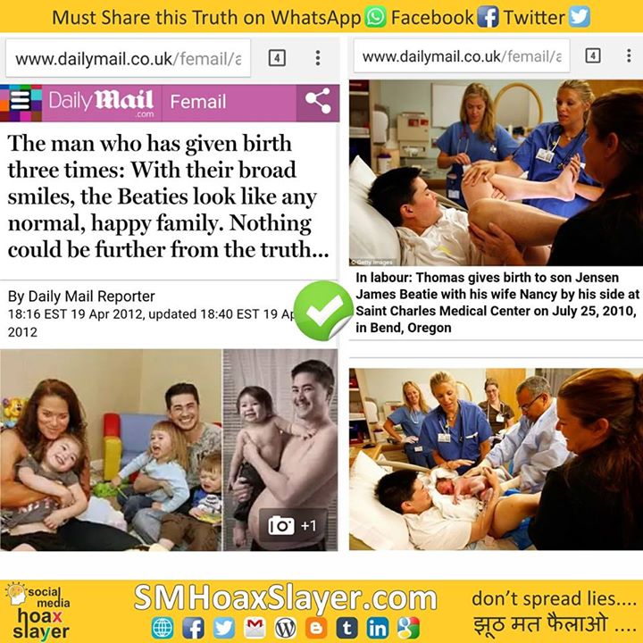 SOURCE: http://www.dailymail.co.uk/femail/article-2111259/The-man-given-birth-times-With-broad-smiles-Beaties-look-like-normal-happy-family-Nothing-truth-.html https://www.facebook.com/SMHoaxSlayer/photos/a.147357335599672.1073741828.140690692933003/368895000112570/?type=3