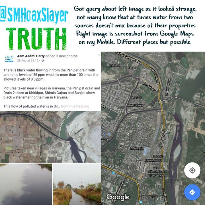 TRUTH – Received a Query about an aerial photo of Yamuna River with two different colors of water posted on a political party’s page.