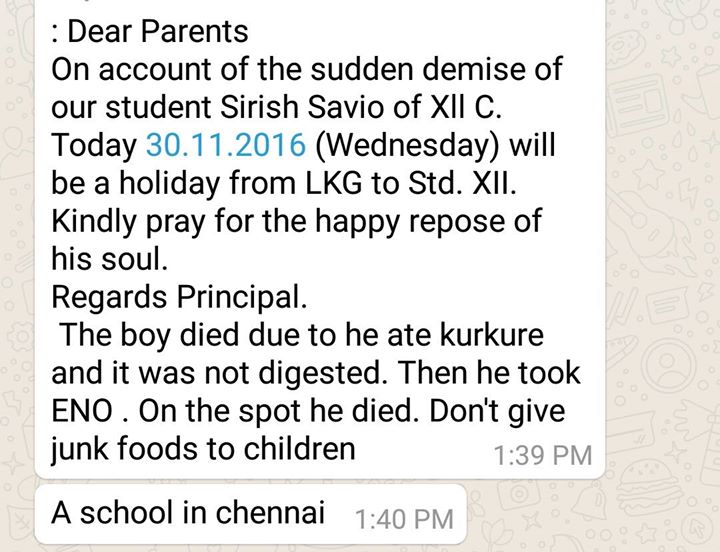 URGENT! @KurkureSnacks Pls clear – A KID DIED ON DRINKING ENO AFTER KURKURE. Sounds hoax