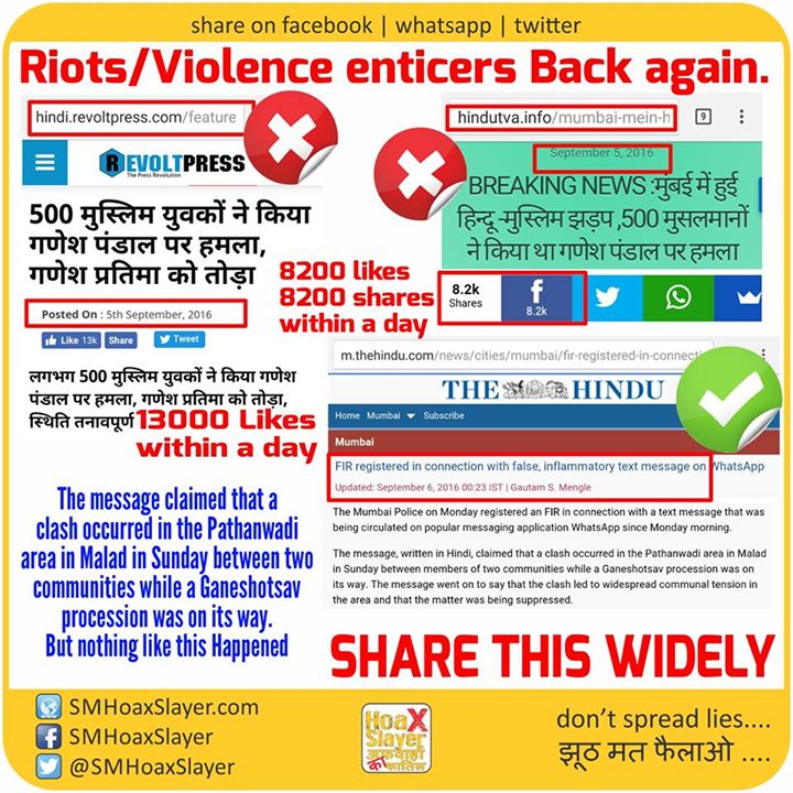 2. http://hindi.revoltpress.com/featured/500-muslims-attacks-ganesh-pandal-and-damages-ganesh-murti/ https://www.facebook.com/SMHoaxSlayer/photos/a.147357335599672.1073741828.140690692933003/341000012902069/?type=3