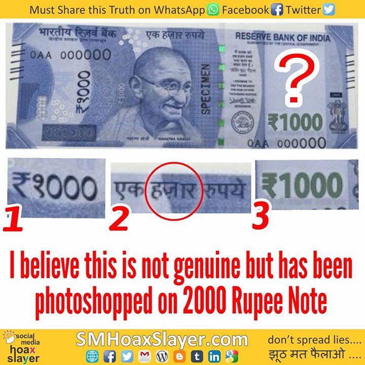 3. In 2000 Note, this is written with a pattern and is not flat, plis also closely see the background, looks erased. https://www.facebook.com/SMHoaxSlayer/photos/a.147357335599672.1073741828.140690692933003/384674145201322/?type=3