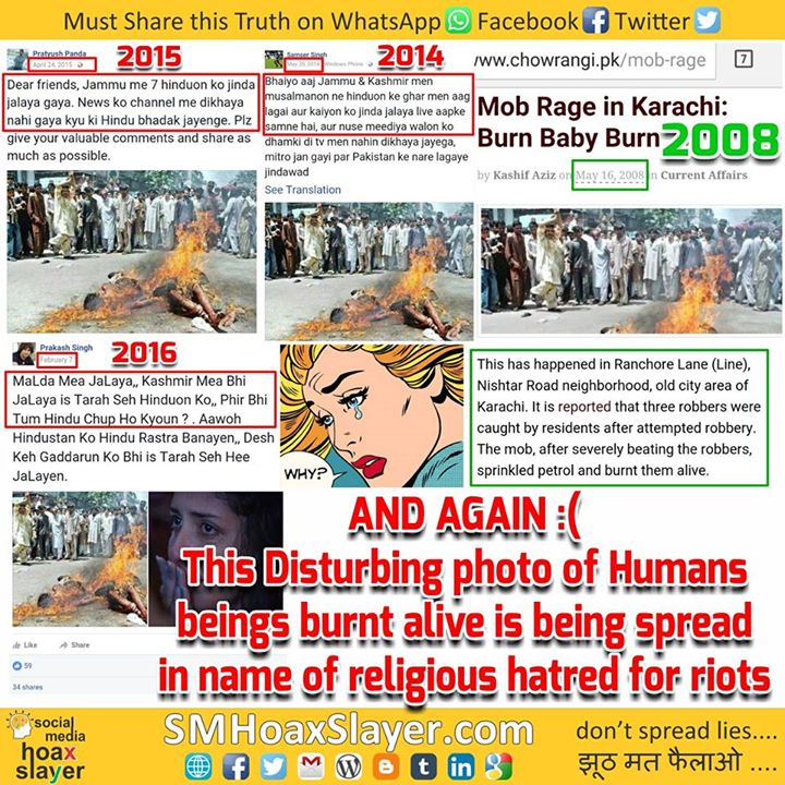 This Disturbing photo of Humans being burnt alive is being spread in name of religious hatred claiming media is not showing it intentionally.