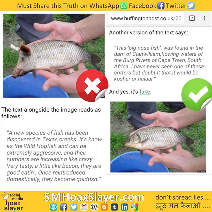 TRUTH: http://www.huffingtonpost.co.uk/2014/03/13/hogfish-real-or-fake_n_4956668.html https://www.facebook.com/SMHoaxSlayer/photos/a.147357335599672.1073741828.140690692933003/359098247758912/?type=3