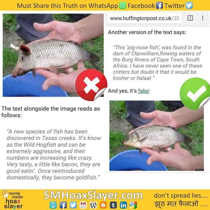 TRUTH: http://www.huffingtonpost.co.uk/2014/03/13/hogfish-real-or-fake_n_4956668.html https://www.facebook.com/SMHoaxSlayer/photos/a.147357335599672.1073741828.140690692933003/398027187199351/?type=3