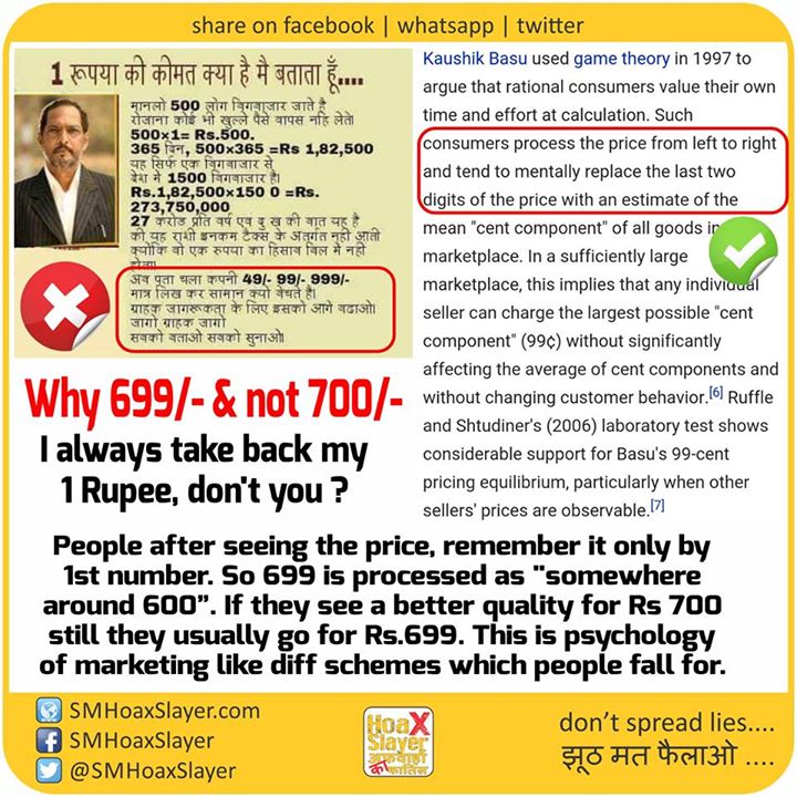 Why 699/- & not 700/- ? This @BigBazaar Theory of 1 Rs is wrong. Read the reason here –
