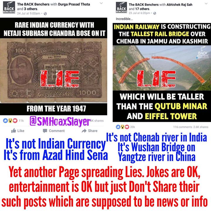 Yet another Page @Dbackbenchers spreading Lies. Jokes & Entertainment are OK but just DON’T Share their such posts which are supposed to be news or info. https://www.facebook.com/SMHoaxSlayer/photos/a.147357335599672.1073741828.140690692933003/318245655177505/?type=3