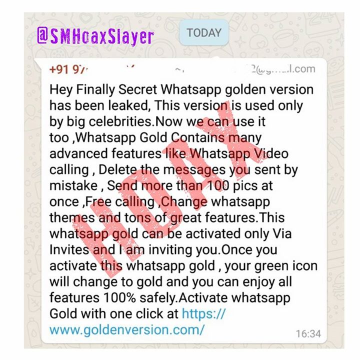 Yet Another #Whatsapp #Hoax https://www.facebook.com/SMHoaxSlayer/photos/a.147357335599672.1073741828.140690692933003/284479708554100/?type=3